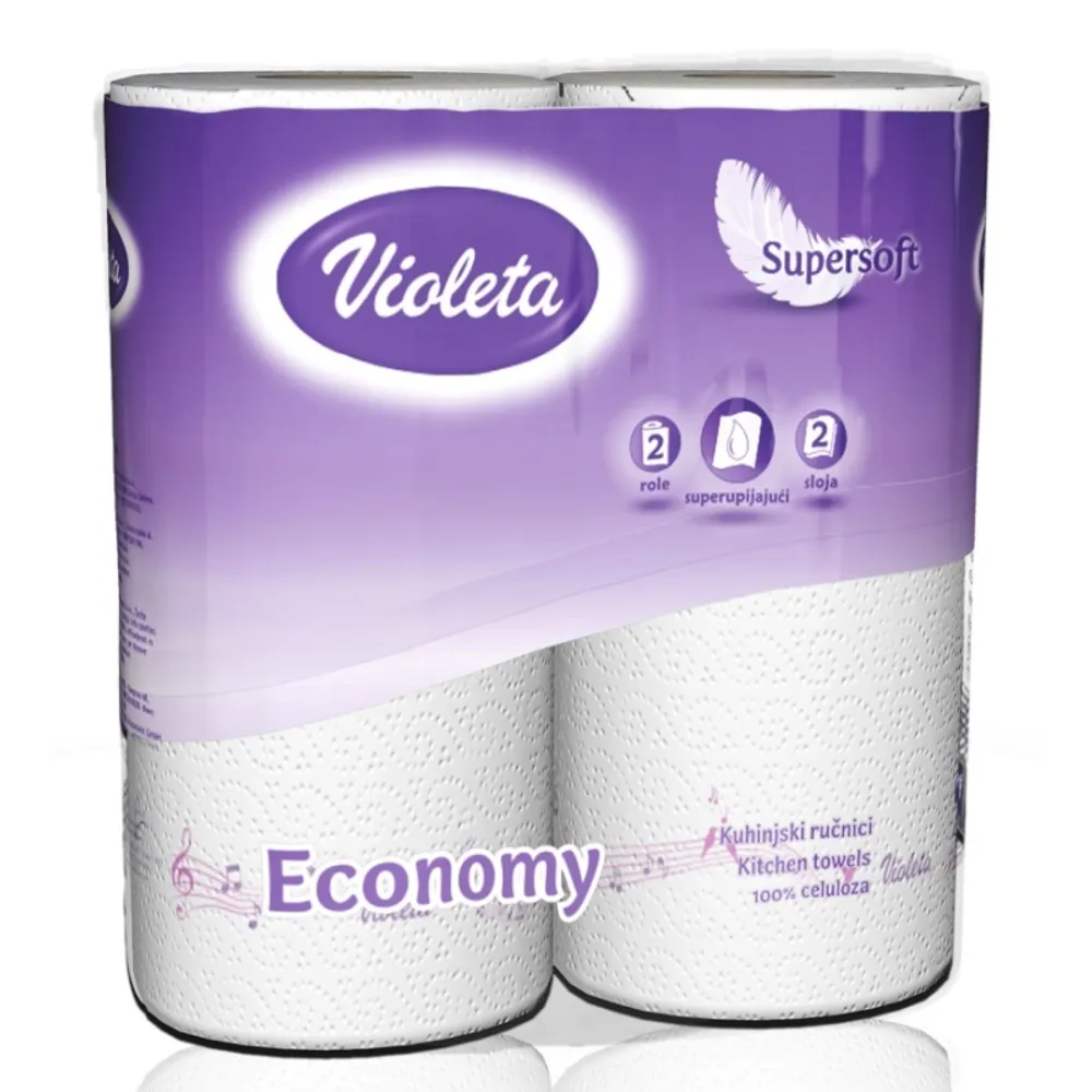 VIOLETA KUHINJSKI RUČNIK, 2 sl., bijeli, 100 % celuloza. Spoj su inovativne tehnologije i visoko kvalitetnih sirovina koji omogućuju odlično upijanje i čvrstoću.