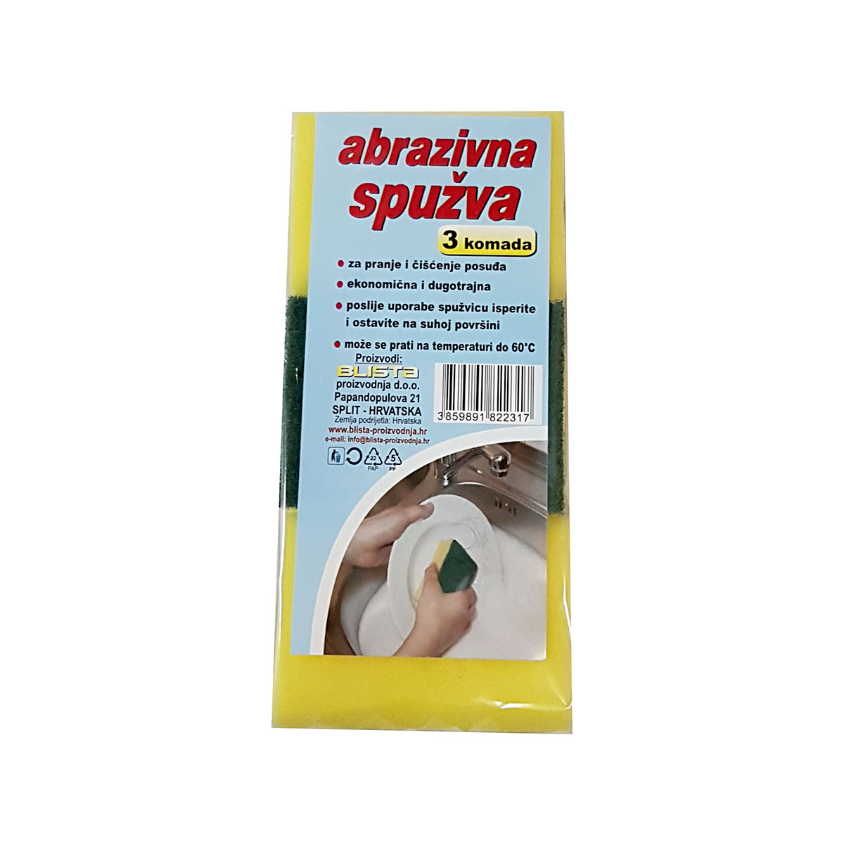 ABRAZIVNA SPUŽVA za čišćenje suđa i raznih površina.