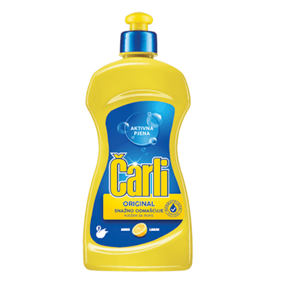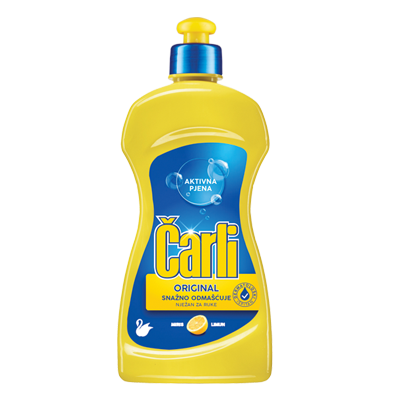 ČARLI ORIGINAL sredstvo s mirisom limuna prvi je hrvatski deterdžent za ručno pranje posuđa, nastao još davne 1974. godine. Njegova jedinstvena formulacija i bogata aktivna pjena snažno uklanjaju masnoće i zaprljanja sa svih vrsta posuđa dok istovremeno njeguje ruke i sprečava njihovo isušivanje. Čarli Original je dermatološki testiran, biološki je razgradljiv i pH neutralan te nije testiran na životinjama.