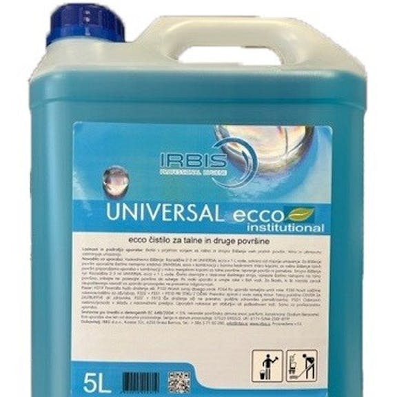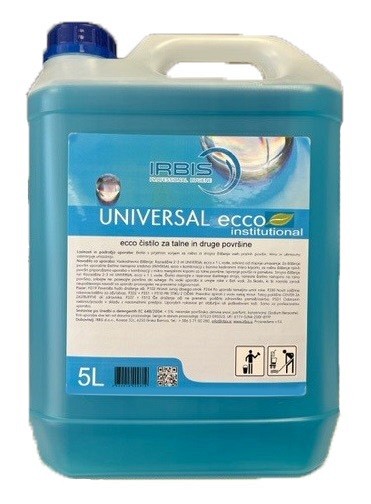 IRBIS UNIVERSAL ECCO sredstvo za čišćenje svih vodootpornih površina. Pogodno za strojno i ručno čišćenje. Sadrži kombinaciju aktivnih sastojaka, djeluje brzo, ugodnog je mirisa, održava površinu jako sjajnom, osigurava brzo sušenje.