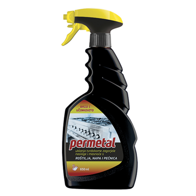 PERMETAL sredstvo za čišćenje pećnica, roštilja i napa. Ne koristiti za površine od aluminija, bakra i cinka. Prije uporabe probati na manje vidljivom mjestu zbog sigurnosti površine.
