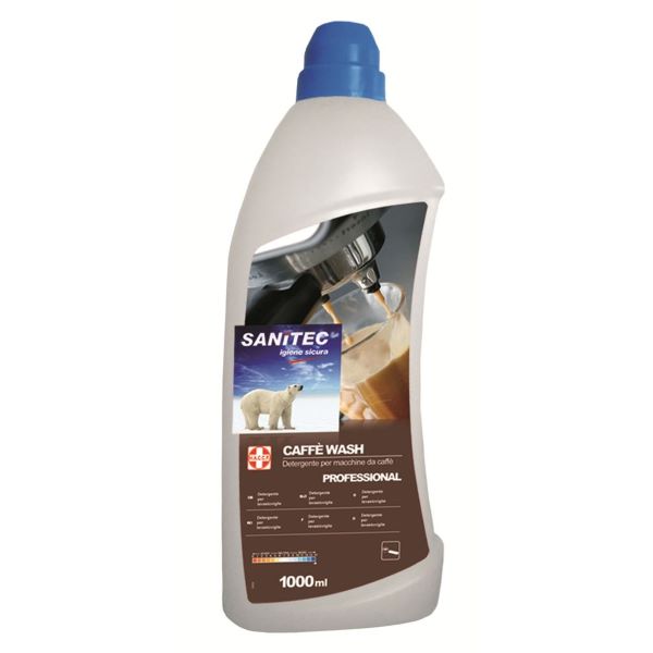 SANITEC CAFFE WASH sredstvo za pranje aparata za kavu. Alkalni koncentrirani tekući deterdžent za čišćenje prljavštine i masnoće koja se nakuplja u filterima i ručkama aparata za kavu.